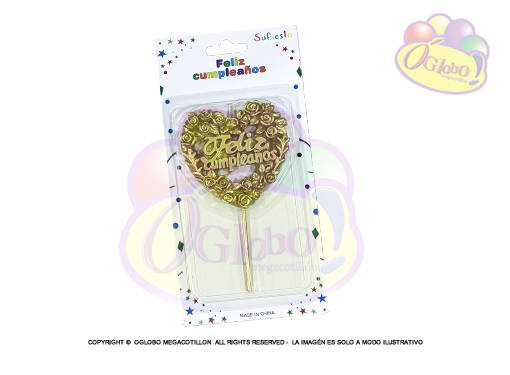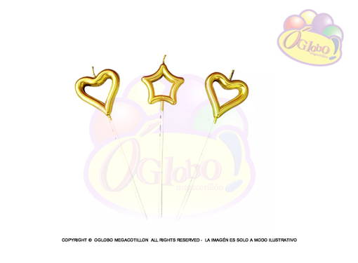 VELA CORAZON Y ESTRELLA DORADO C/PALITO EN BLISTER 15CM.X 1UN.