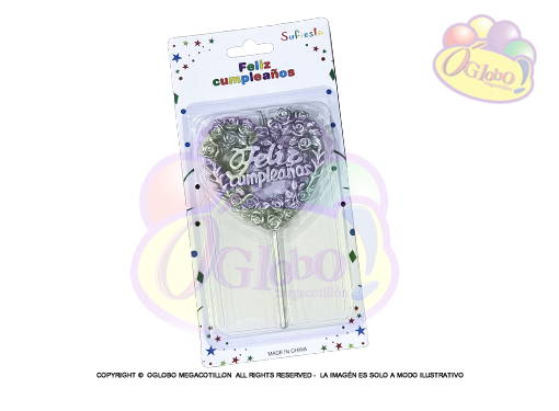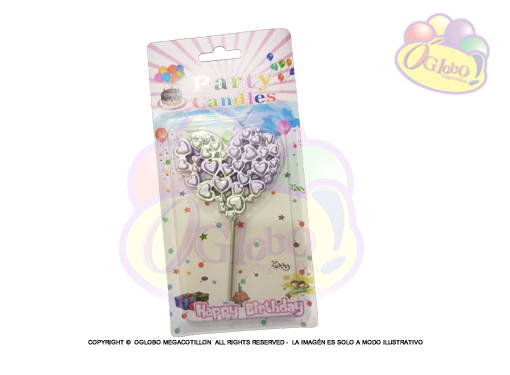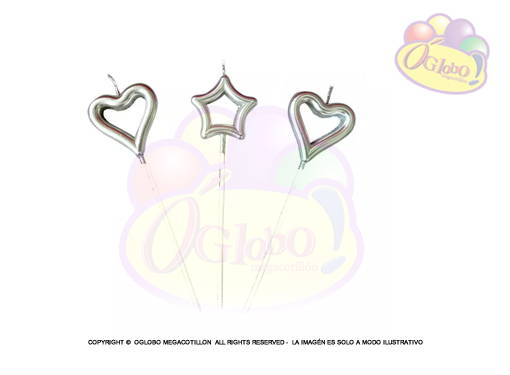 VELA CORAZON Y ESTRELLA PLATEADA C/PALITO EN BLISTER 15CM.X 1UN.