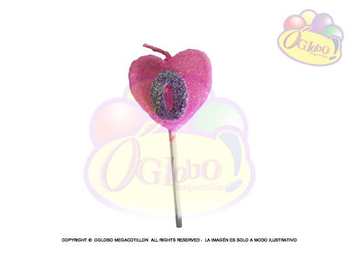 VELA CORAZON ROSA N° 0 PLATEADO C/GIBRE Y PALITO X 1UN.