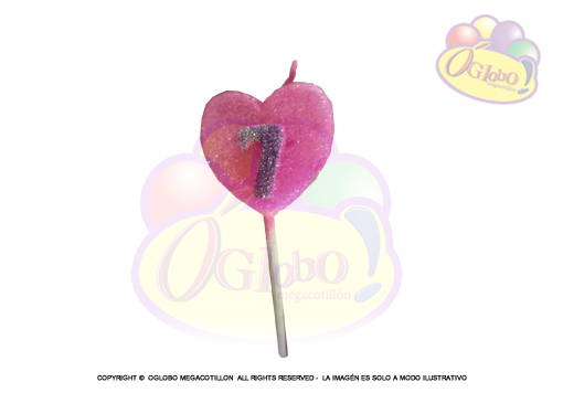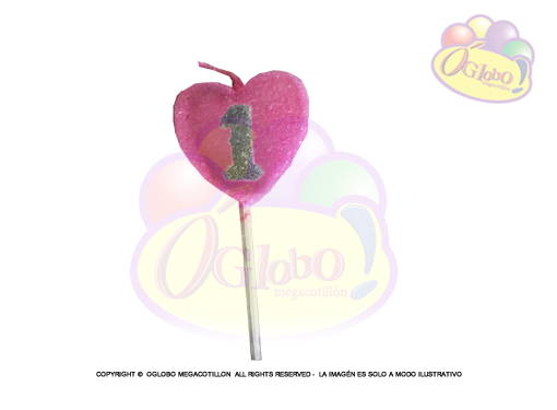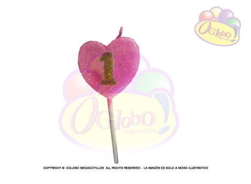 VELA CORAZON ROSA N° 1 DORADO C/GIBRE Y PALITO X 1UN.