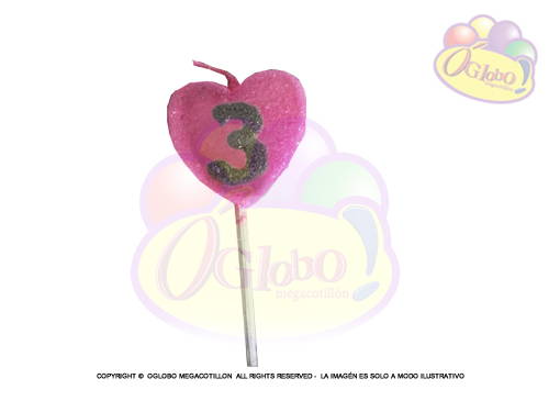 VELA CORAZON ROSA N° 3 DORADO C/GIBRE Y PALITO X 1UN.