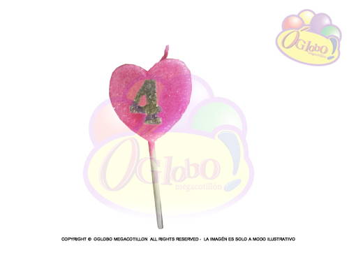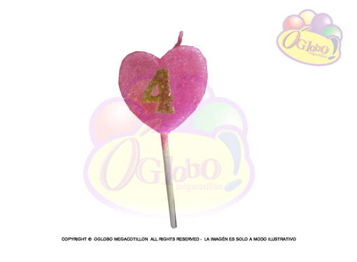 VELA CORAZON ROSA N° 4 DORADO C/GIBRE Y PALITO X 1UN.
