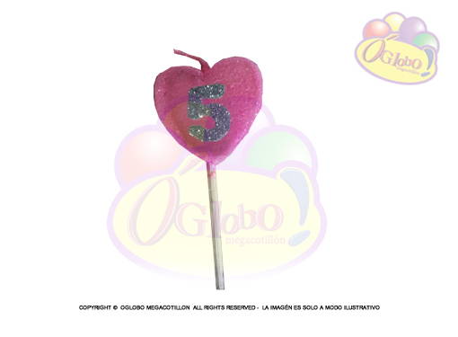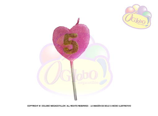 VELA CORAZON ROSA N° 5 DORADO C/GIBRE Y PALITO X 1UN.
