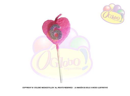 VELA CORAZON ROSA N° 6 DORADO C/GIBRE Y PALITO X 1UN.