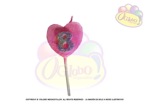 VELA CORAZON ROSA N° 8 PLATEADO C/GIBRE Y PALITO X 1UN.