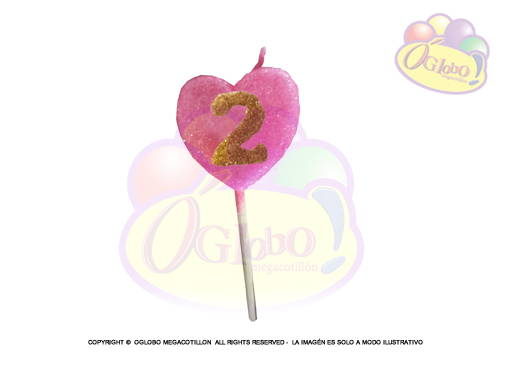 VELA CORAZON ROSA N° 2 DORADO C/GIBRE Y PALITO X 1UN.