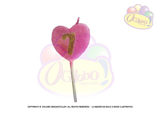 VELA CORAZON ROSA N° 7 DORADO C/GIBRE Y PALITO X 1UN.