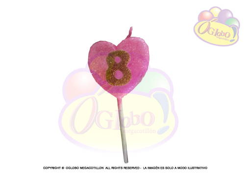 VELA CORAZON ROSA N° 8 DORADO C/GIBRE Y PALITO X 1UN.