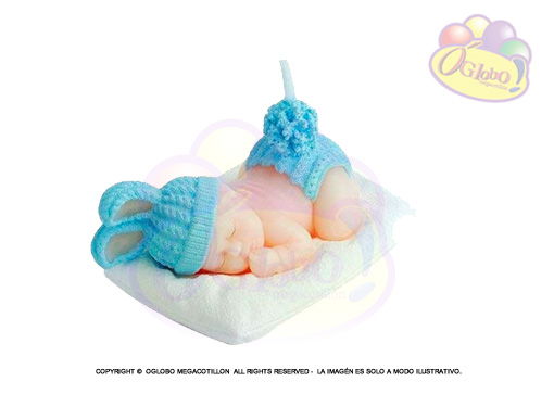 VELA DECORADA SOUVENIR BEBE CELESTE X 1