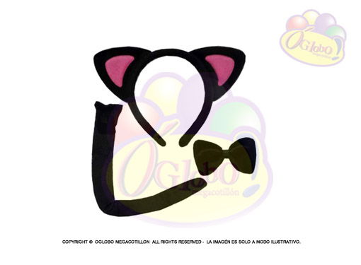 SET PELUCHE GATA VINCHA, MOÑO Y COLA X 1UN.