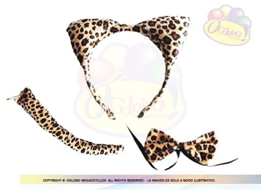 SET PELUCHE LEOPARDO VINCHA, MOÑO Y COLA X 1UN.